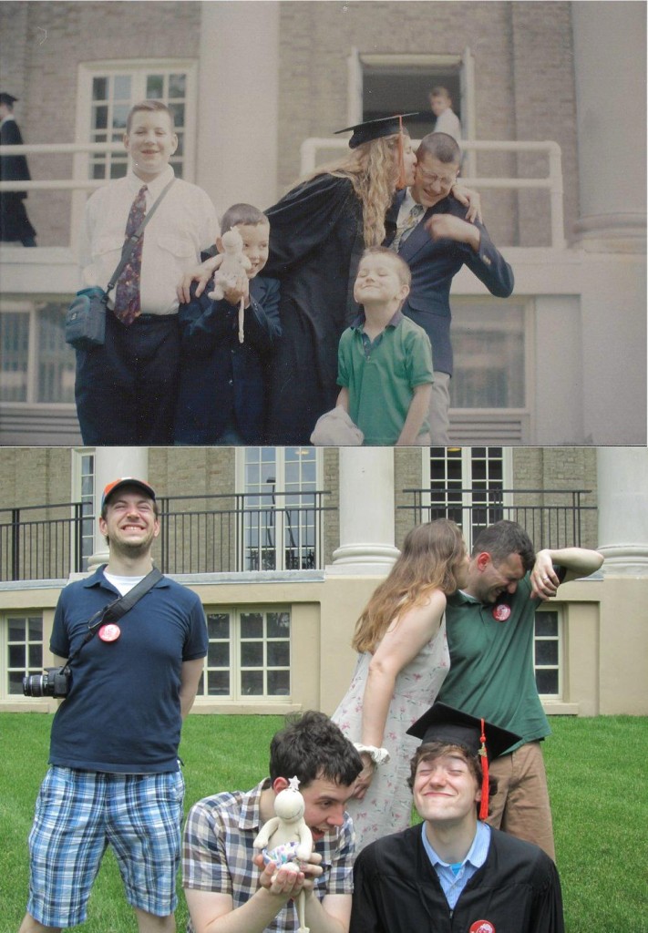 4. “Así posé en la foto de graduación de mi hermano; años después la recreamos”