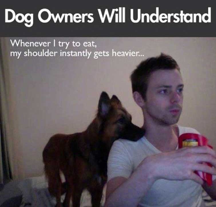 “Los dueños de perros entenderán, cuando trato de comer y mi hombro de pronto se hace más pesado”.