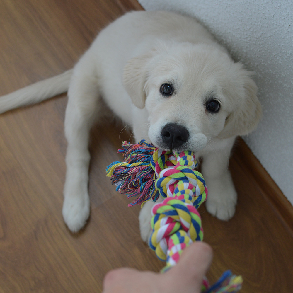 Quiere que le arrojes la pelota, pero no te la quiere devolver.