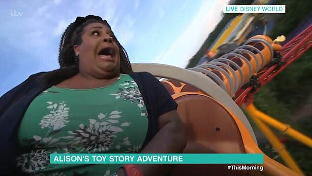 Hilarious: Alison Hammond left This Morning viewers in hysterical laughter on Thursday as she screamed crazily while riding on a children’s rollercoaster