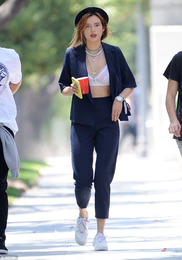 Edgy: Bella Thorne put on a defiant, and flesh-flashing display as she was seen for the first time since the Famous In Love ‘cancellation’ controversy, en-route to a Beverly Hills business meeting on Wednesday