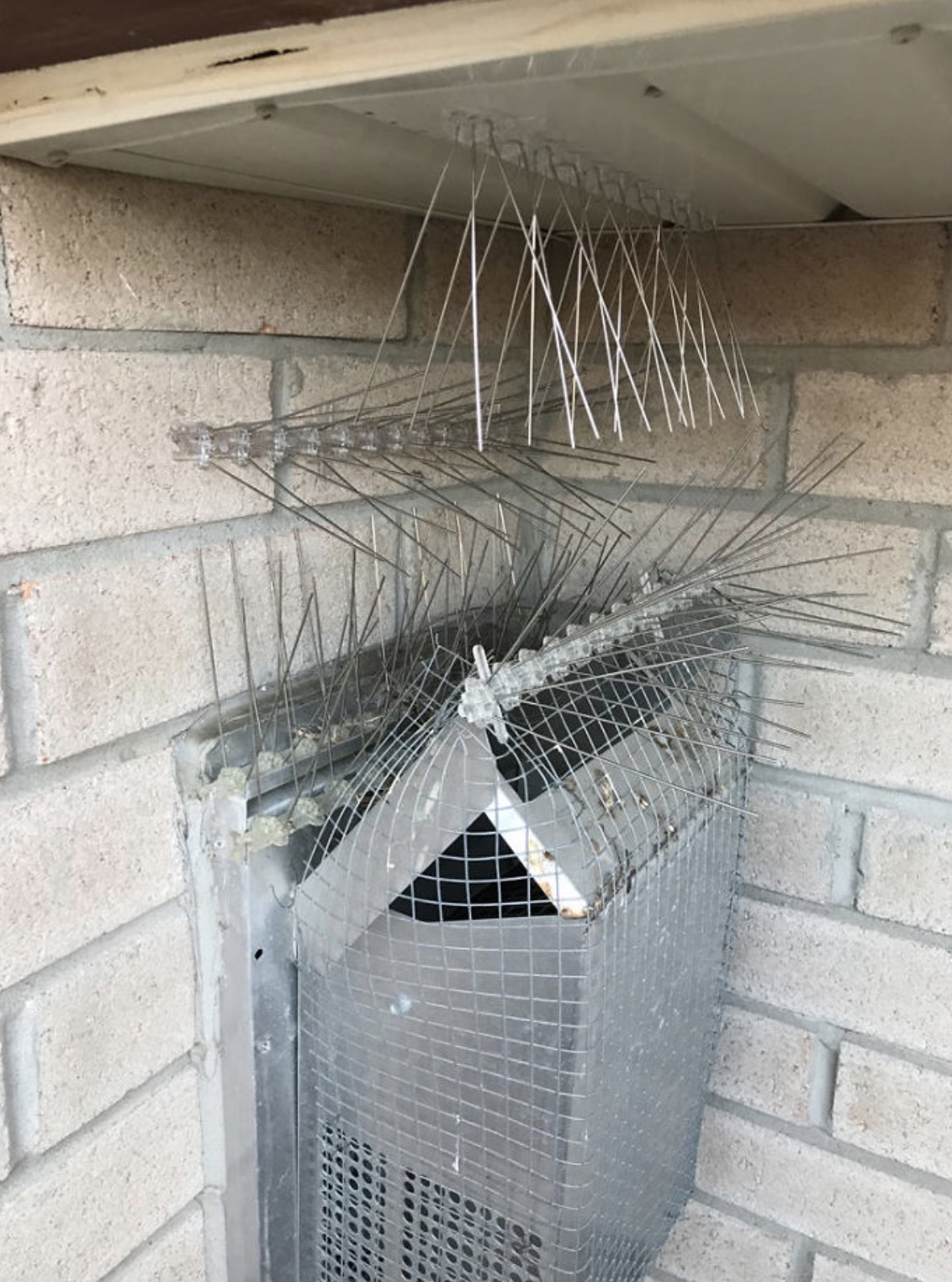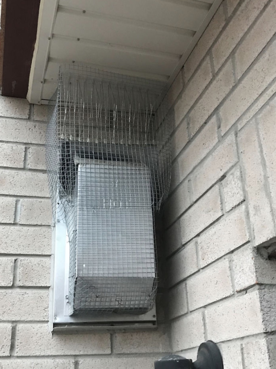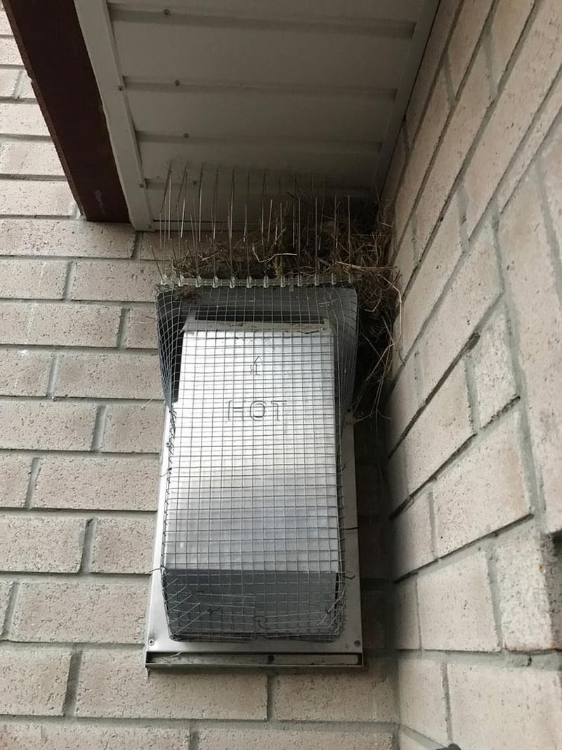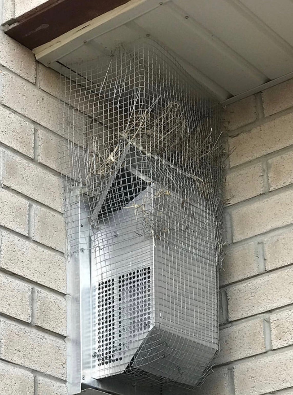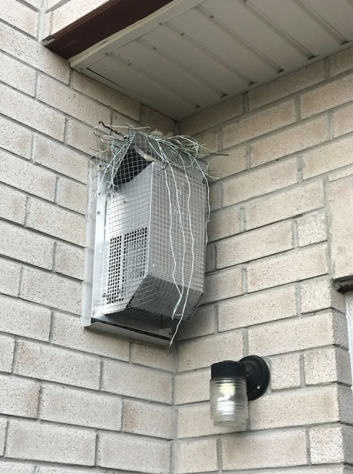 Compramos una casa nueva. Tiene una bonita chimenea de gas y el conducto de escape está bien colocado, cerca de la puerta trasera. El problema era que ese rincón parecía ideal para que los pájaros anidaran, ya que ofrece protección y calor.