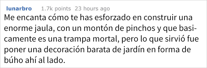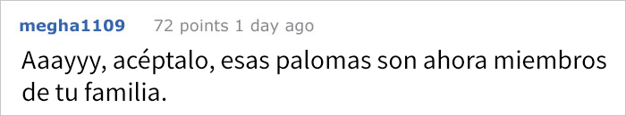 Las aves silvestres saben cuándo es el momento de reproducirse; y este usuario de imgur atomicrabbit2 lo sabe por experiencia propia, pues al mudarse a su nueva residencia conoció a sus inquilinos emplumados. Resulta que el hombre encontró a un par de palomas que decidieron hacer su nido sobre el conducto del escape de la chimenea de gas. Pero como siempre dejaban residuos, tomó la decisión de pedirles que se retiraran, pero ellos no estaban de acuerdo. Esto inició una larga contienda…