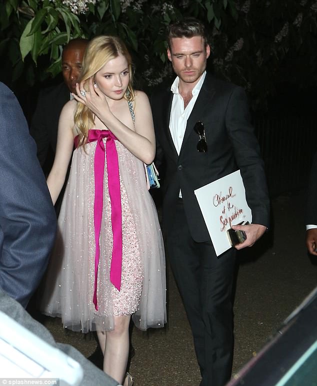 Couple retreats: Richard Madden and girlfriend Ellie Bamber put on a loved-up display as they left the Serpentine Gallery Summer Party hand-in-hand on Tuesday night