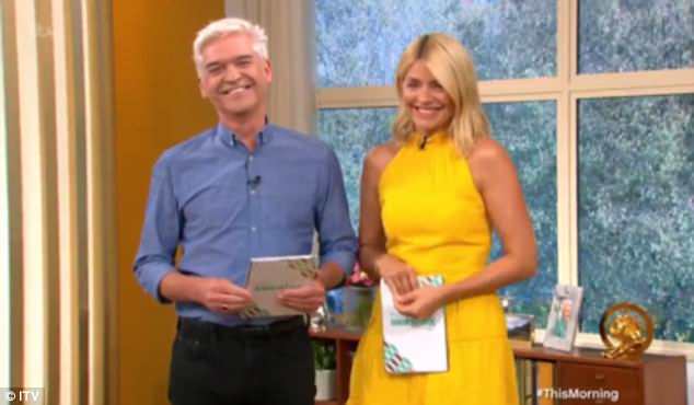 Holly could barely keep herself under control at this, as she was seen tittering next to Phil as he tried to complete his intro.