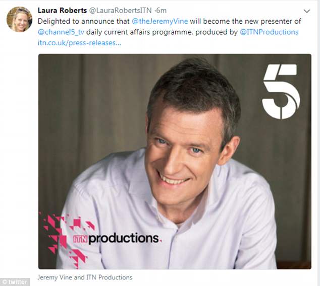 Ben Frow, director of programmes for Channel 5 said: ‘Jeremy Vine is a brilliant broadcaster whose supreme ability to make challenging stories accessible to a wider audience, not to mention his intellect, energy and wit, makes him the perfect choice to present our daily current affairs show.