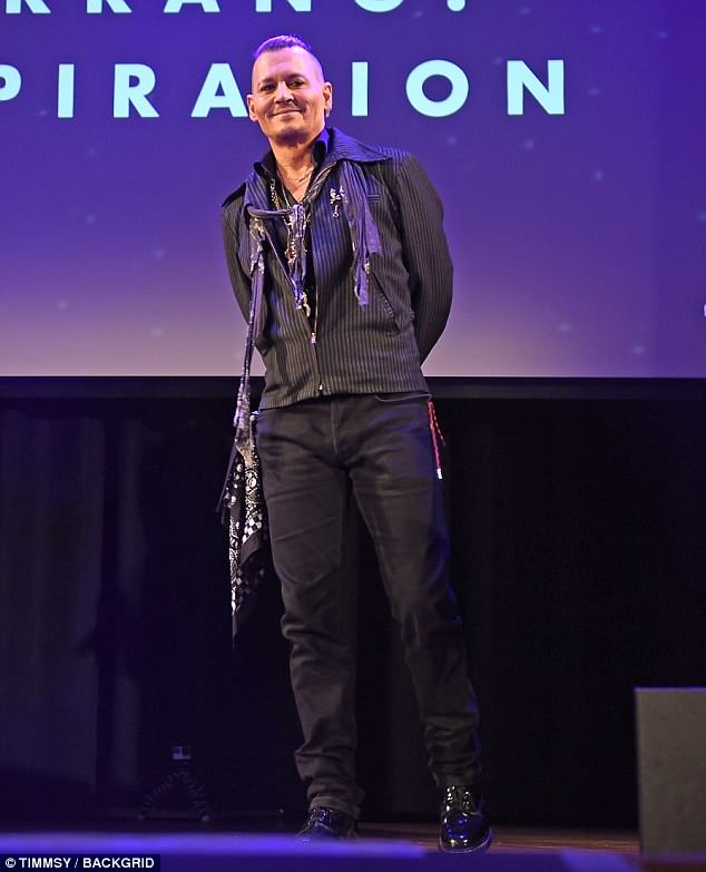 Signature look: Johnny styled his dark locks into a swept back hairdo, with the sides shaved, as he added his trademark black smokey eyeliner