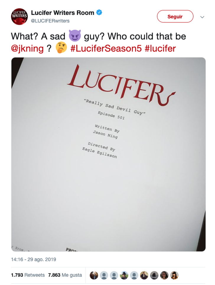 Al leerlo nos queda claro que no veremos al pícaro Tom Ellis y su bella sonrisa, pues el título es «Un chico malo realmente triste». Los títulos nos dan una perspectiva de lo que contendrá cada capítulo, y esta clase de palabras solo nos hace pensar en lo que Lucifer Morningstar está enfrentando.
