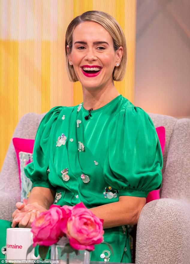 Hilarious: Sarah Paulson, 43, admitted she looked like a ‘giant highlighter’ on the Ocean’s 8 red carpet in New York as she appeared on Wednesday’s Lorraine