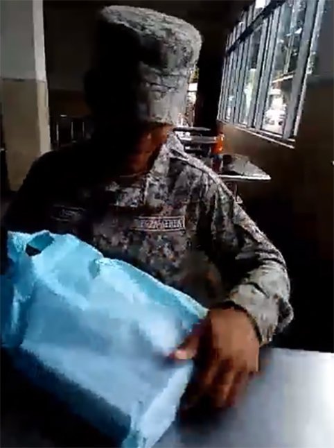 La novia de este joven militar fue a visitarlo, pero no llegó con las manos vacías sino con una cajita envuelta que, en un primer momento, pudiéramos pensar que se trataba de un valioso teléfono celular para estar más en contacto, pero no.