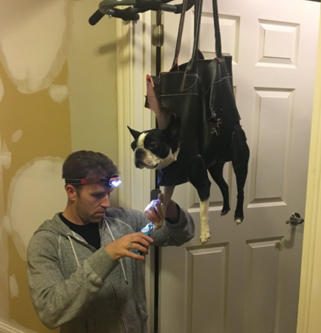 Kendal Peifer (@kendalpeifer) compartió una foto de su padre en el momento que le cortaba las uñas a su perro. La fotografía causó mucha gracia por la curiosa manera en la que el hombre se las ingenió para mantener tranquilo a su can.
