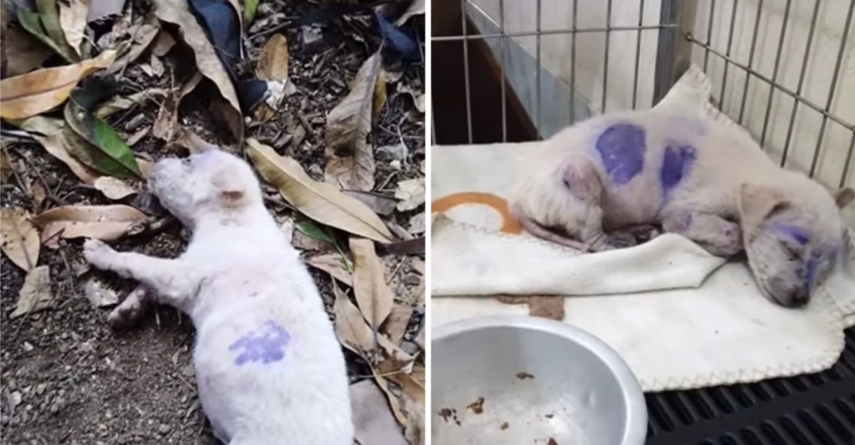 Hace unos días unos rescatistas recibieron una llamada respecto a un cachorro que encontraron en medio de un sitio eriazo, con su pelaje teñido y en pésimas condiciones. El pequeño no podía respirar bien y no parecía tener muchas posibilidades de seguir con vida.