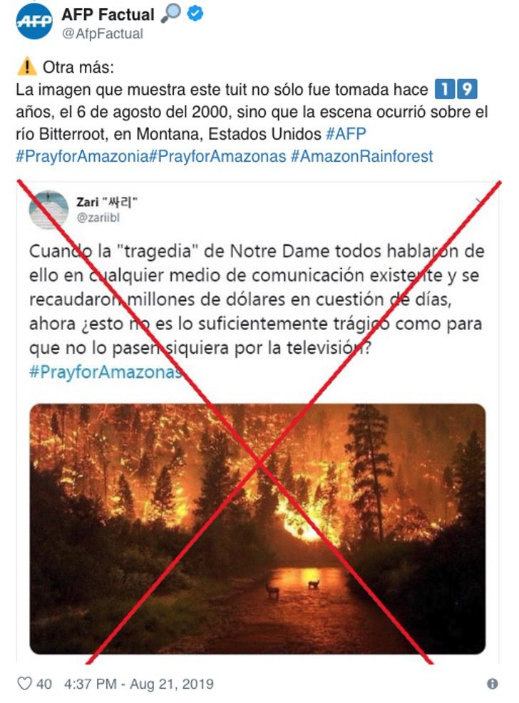 Aunque la intención es ayudar, la situación se ha prestado también para difundir imágenes falsas del incendio, sobre todo compartiendo imágenes que datan de años anteriores o, peor, que ni siquiera corresponden a la zona.