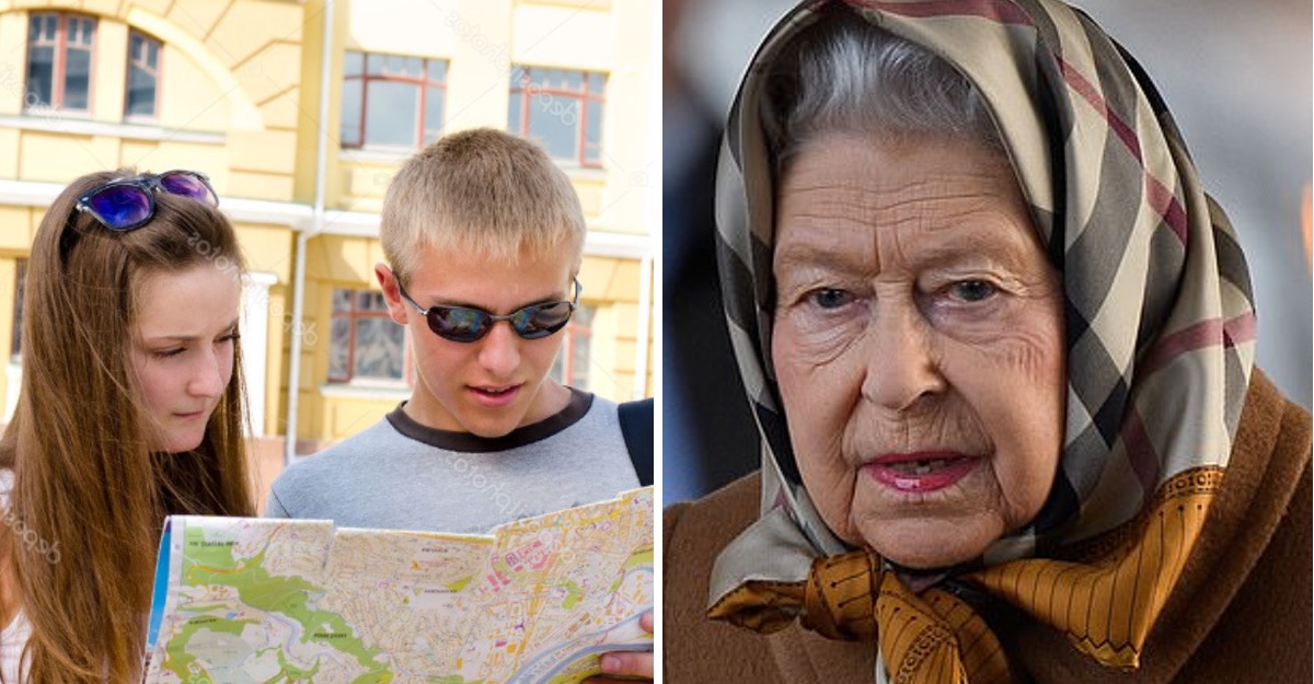 Tan común se veía, que si no fuera por el oficial de policía que la estaba acompañando, hubiera pasado desapercibida. Eso fue lo que creyeron la pareja de turistas norteaméricanos, que buscando indicaciones para llegar a ver la residencia de la familia real, se acercaron a su majestad, preguntándole si vivía en el área y si había visto a los royals.