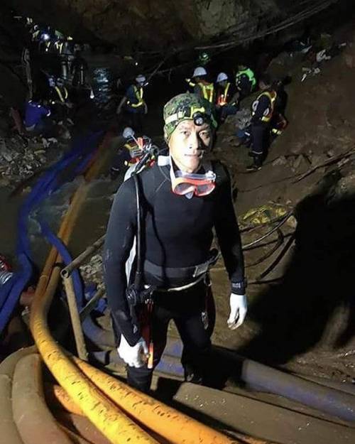 Última fotografía de Saman Kunan, el buzo perdió el conocimiento cuando salía del complejo de cuevas de Tham Luang —un recorrido de cinco horas—, después de llevar provisiones a los niños atrapados.